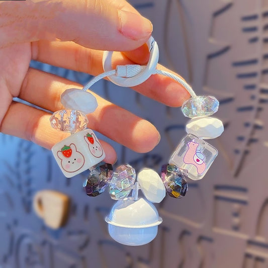 Charming Acrylic Beads Metal Bell Kawaii Cutie Keychain Backpack Handbag Charm Gift Fashion Accessories