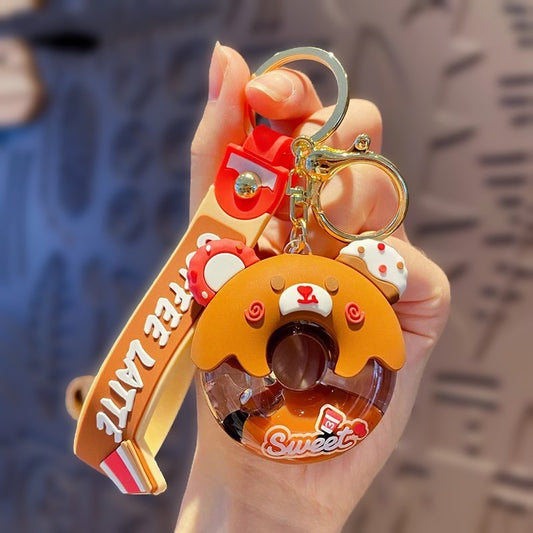 Adorable Bear Donut Ears Bubble Floating Liquid Kawaii Cutie Key Pendant Keychain Handbag Charm Gift Fashion Accessories