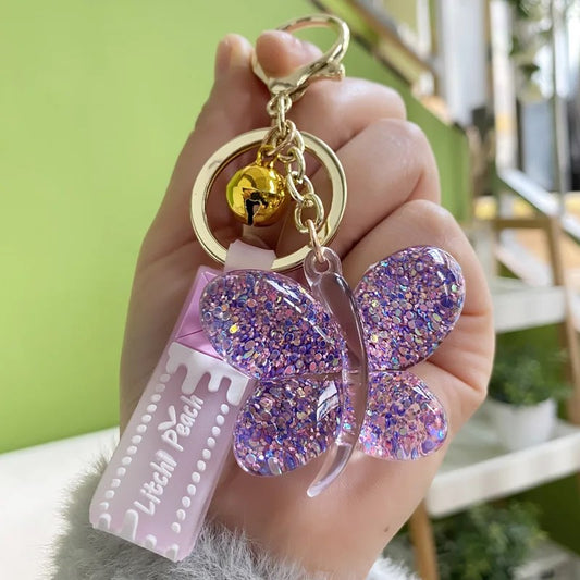 Catchy Acrylic Sequin Butterfly Bell Kawaii Cutie Keychain Handbag Charm Gift Fashion Accessories