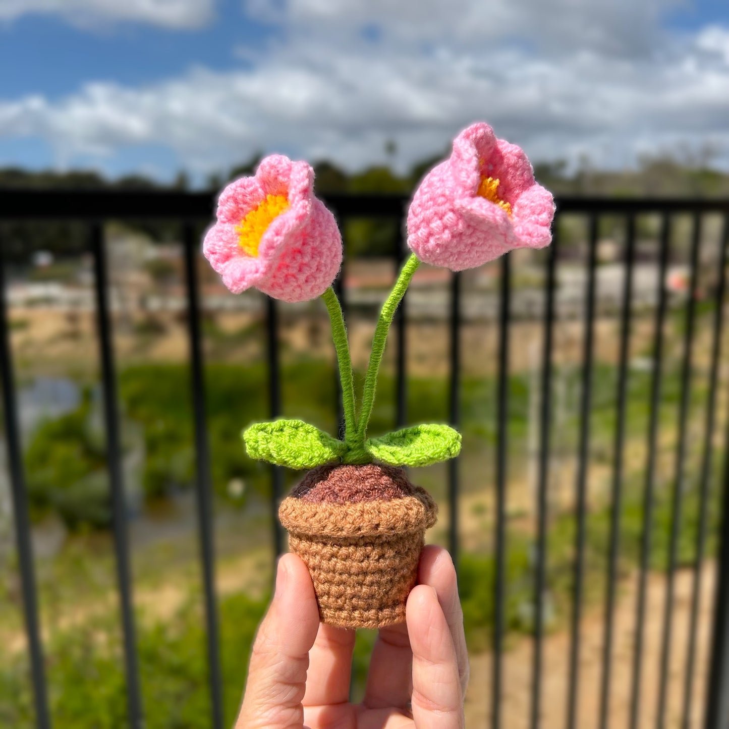 1 x handmade crochet flower yellow stuffed tulip potted plant