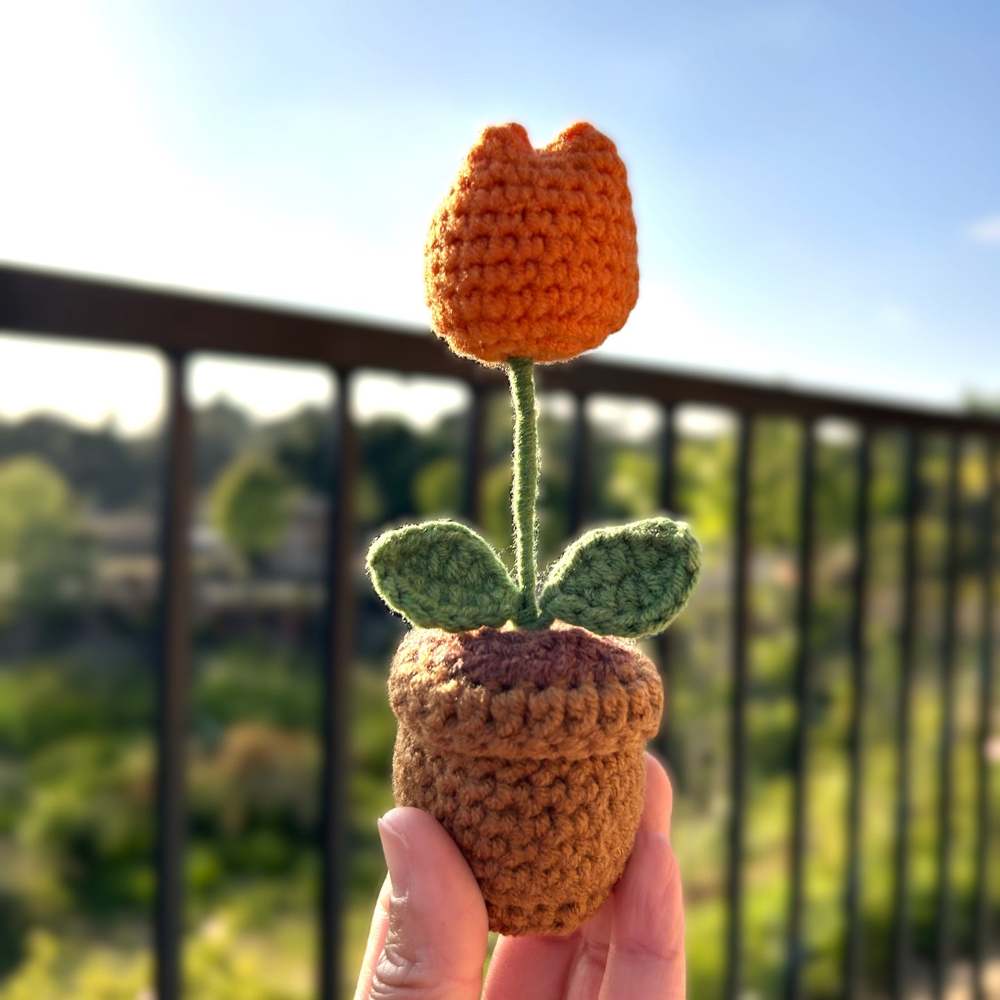 1 x handmade crochet flower orange stuffed tulip potted plant