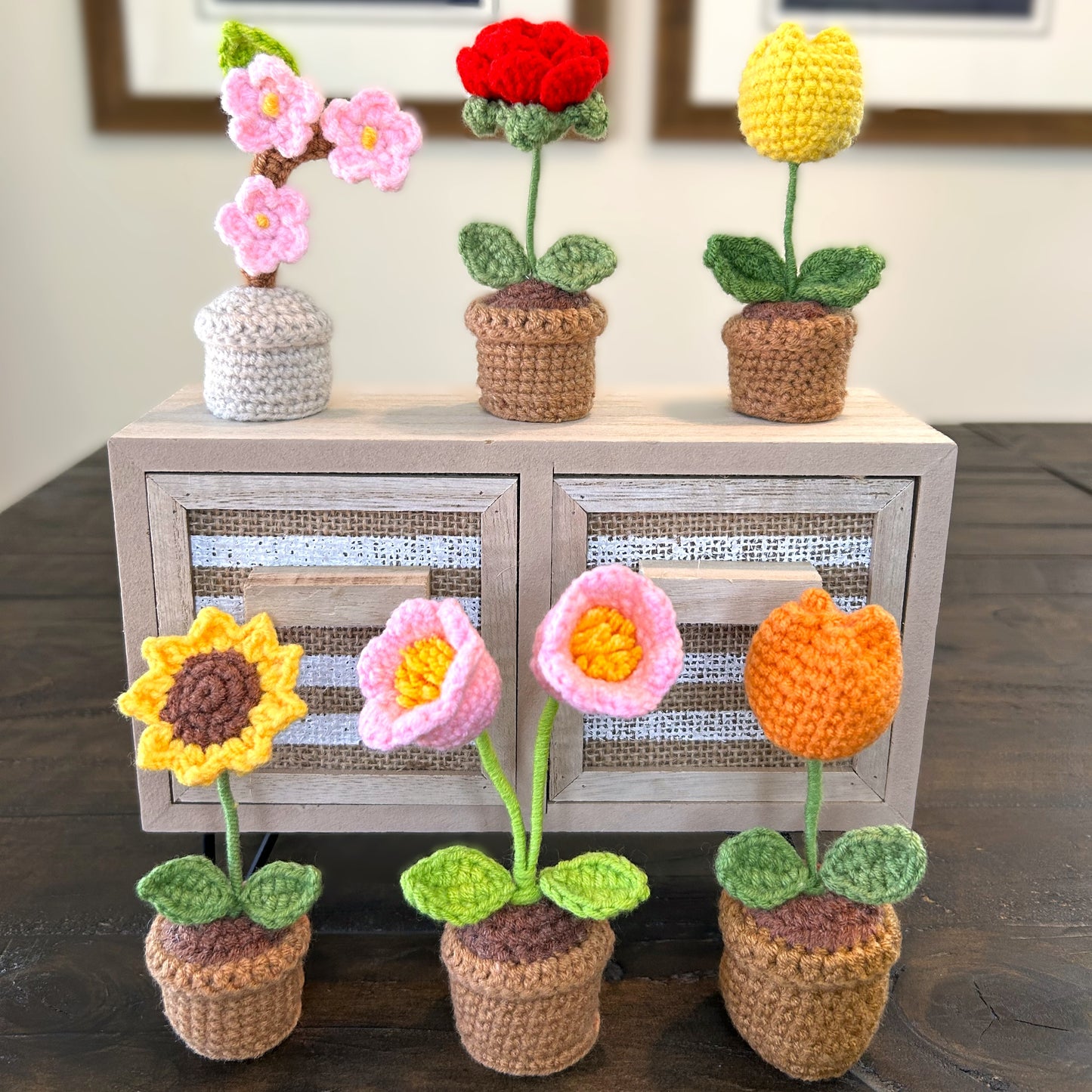 Handmade Crochet Knitted Potted Plant - Bundle B 6PCS - Gift for Valentine's, Birthday, Mother's Day, Office/Home Decor